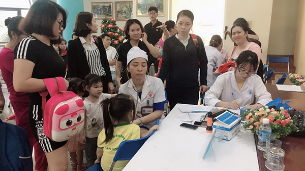 Tác phong làm việc khẩn trương, hướng dẫn nhiệt tình, cẩn thận của các cô giáo cùng nhân viên y tế phường đã giảm đi những lo lắng và thắc mắc của phụ huynh khi cho con tham gia tiêm bổ sung vắc xin này.