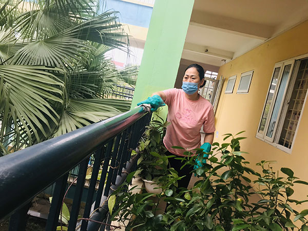 Vệ sinh khử khuẩn trong và ngoài lớp học để phòng chống dịch bệnh.