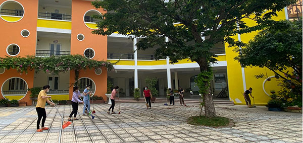 Cán bộ giáo viên nhân viên nhà trường dọn vệ sinh