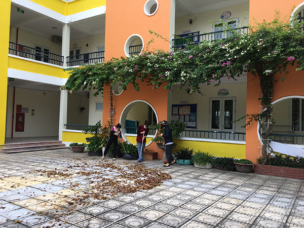 Theo sự chỉ đạo và hướng dẫn trực tiếp của Ban giám hiệu cùng với Chi đoàn trường, các tổ, các khối chia thành những nhóm nhỏ để thực hiện công tác vệ sinh theo từng khu vực được phân công. Khi thực hiện nhiệm vụ, cán bộ và giáo viên nhân viên luôn tuân thủ qui định 5k của bộ y tế - không tập trung đông người, giữ khoảng cách và luôn đeo khẩu trang.